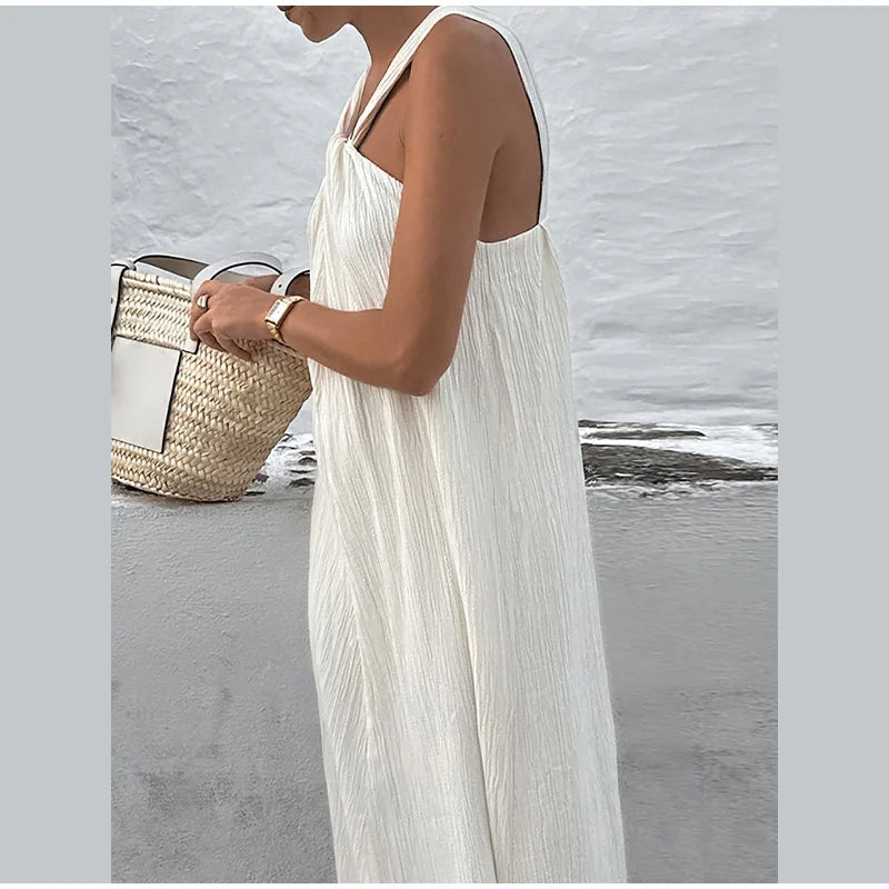 שמלת נינה לבנה עם קשירה נדירה על הצוואר (במבצע לזמן מוגבל)